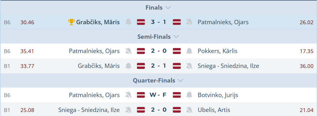 Juris Straubergs (62,63) 3:0 Andris Soroka (45,65)