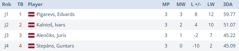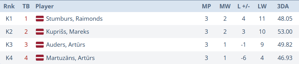 Ainārs “Hot dart” Barbejs grupā ieņem otro vietu, piekāpjoties vienā spēlē un divās gūstot panākumus. Uz izslēgšanas spēlēm!