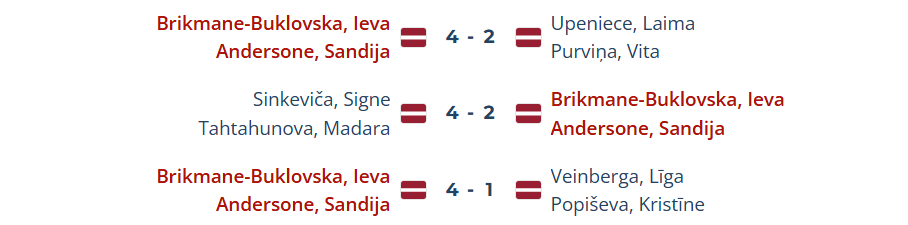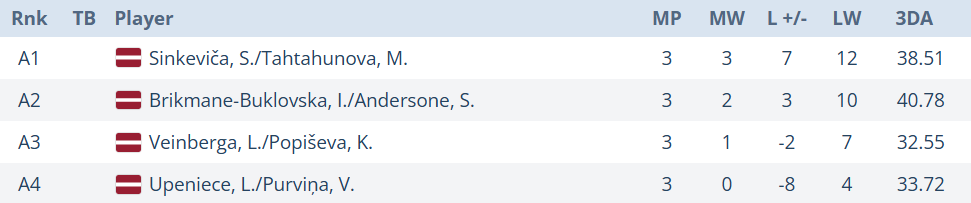 Kas gan būtu pāru sacensības bez mūsu dāmu dueta Ieva “Ezis” Brikmane – Buklovska/Sandija Andersone? Tas nebūtu tas. Grupu spēlēs mūsu dāmām divi panākumi, kas ļauj ieņemt otro vietu un posties uz izslēgšanas spēlēm.