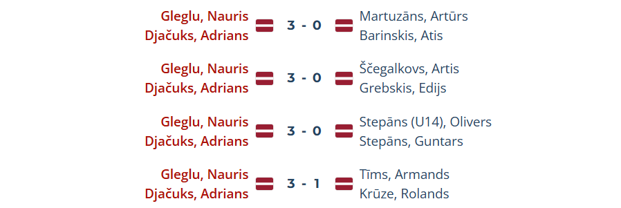 Adrians “Nidzis” Djačuks uz pāru turnīru apvienojis spēkus ar Nauri Gleglu. Grupu turnīrā sarežģījumi nerodas un vīri izcīna panākumus visās spēlēs.