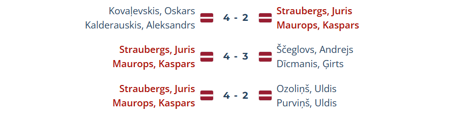 Juris “Barracuda” Straubergs/Kaspars Maurops nolēmuši Jēkabpilī uzkavēties līdz svētdienai, lai kopā piedalītos pāru sacensībās. Grupā mūsu duetam divi panākumi. Diviem pāriem pa divām uzvarām, bet mūsu puiši nav iekrājuši gana labu legu attiecību, tādēļ uz izslēgšanas spēlēm tiek kā otrās vietas ieguvēji.