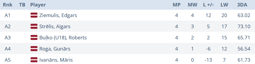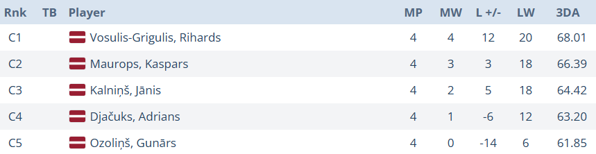 Rihards “The Punisher” Vosulis – Grigulis grupā tiek pie četriem panākumiem tikpat spēlēs. Droša pirmā vieta un teciņiem uz izslēgšanas spēlēm.