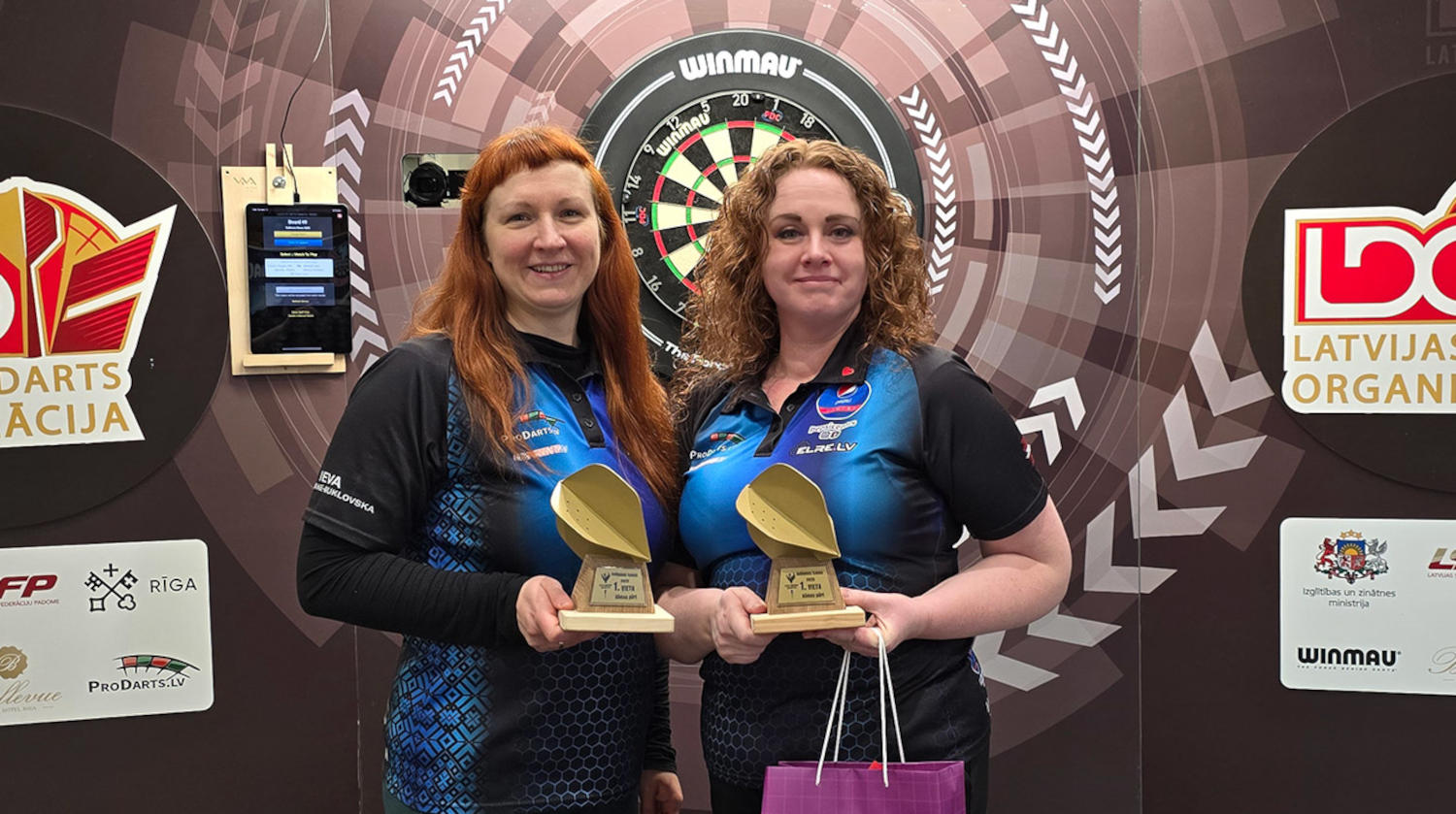 Pusfinālā pret duetu Marta Roga/Sanita Roga mūsu dāmām izdodas labāks sākums un 2:0 vadība. Pretinieces vienu legu atgūst. Mūsu meičas gan rāda augstu pilotāžu, ar 19 un 25 šautriņu legiem uzstādot gala rezultātu 4:1 un iekļūstot turnīra finālā! Spēles protokols.