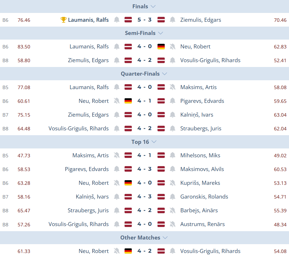 Ralfs Laumanis (76,46) 5:3 Edgars Ziemulis (70,46)