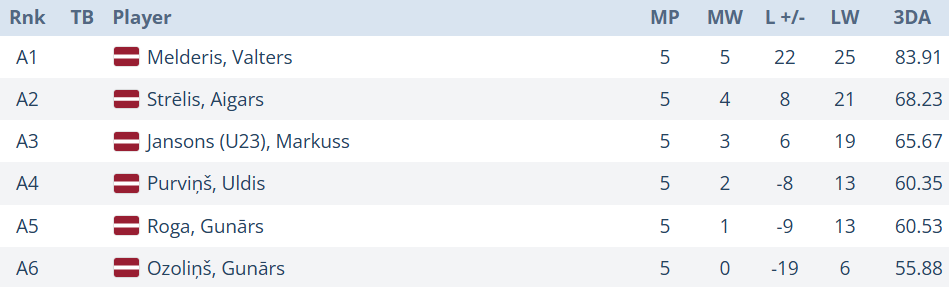 Valters “The Hipster” Melderis grupā spēlē ļoti pārliecinoši. Piecu spēļu ietvaros zaudēti vien 3 legi un uzvarēti 25! Vieta grupas galvgalī un izslēgšanas spēlēs.