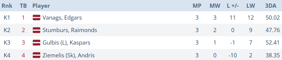 Kaspars Maurops grupā tiek pie trīs panākumiem un piedzīvo divus zaudējumus. Rezultātā trešā vieta grupā un dalība izslēgšanas spēlēs.