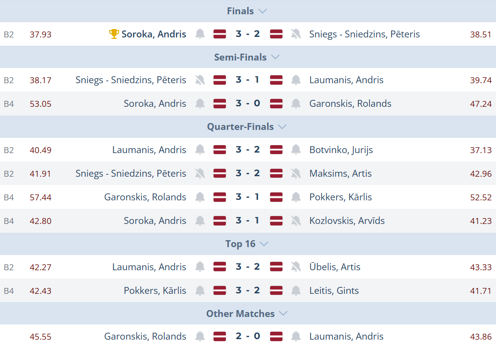 Andris Soroka (53,05) 3:0 Rolands Garonskis (47,24)