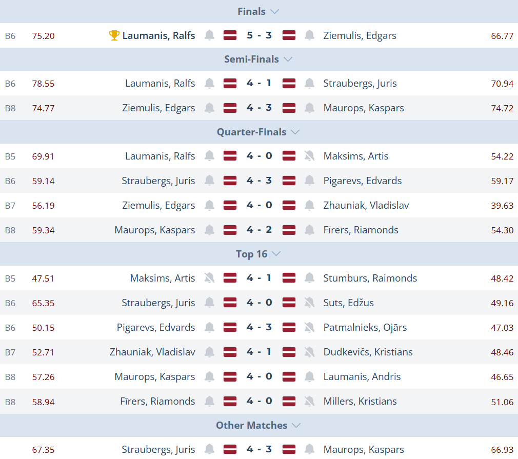Ralfs Laumanis (75,20) 5:3 Edgars Ziemulis (66,77)