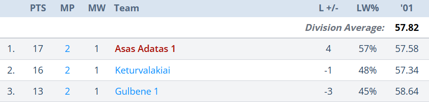 Kā jau ierasts, Ieva Brikmane – Buklovska un Sandija Andersone kopā piedalās pāru sacensībās. Pirmais izaicinājums ceļā Lietuvas duets Vidonija Belieakiene/Evelina Beliakaite. Pirmais legs diezgan saspringts, bet tas mūsu dāmu kontā. Otrajā un trešajā legā mūsējās tik pārliecinošas, ka pretinieces pat netiek līdz noslēdzamiem cipariem. Ceturtajā legā dažas mačbultas tiek aizmestas garām, bet galvenais, ka viena ielido nepieciešamajā sektorā, nodrošinot “sauso” uzvaru un turpmāku dalību turnīrā. Spēles protokols.