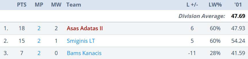 Asās Adatas II ar sastāvu Rolands Garonskis, Edgars Barbejs, Ainārs Barbejs un Rihards Vosulis – Grigulis ieņem dalītu 25. vietu 48 kungu komandu konkurencē.