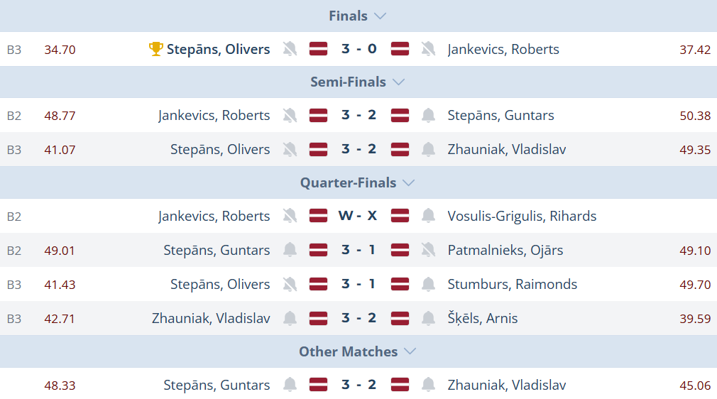 Olivers Stepāns (34,70) 3:0 Roberts Jankevics (37,42)
