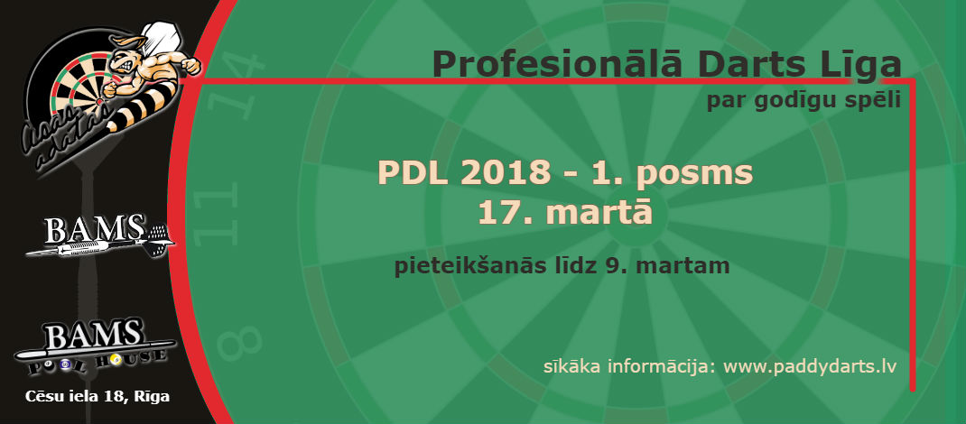 Pagājušajā sestdienā (17.03.) BAMS biljarda kluba telpās tika aizvadītas vēsturiski pirmās Profesionālās Darts Līgas (PDL) sacensības, kurās ar teicamu un pārliecinošu rezultātu triumfēja šī gada Lasīt vairāk